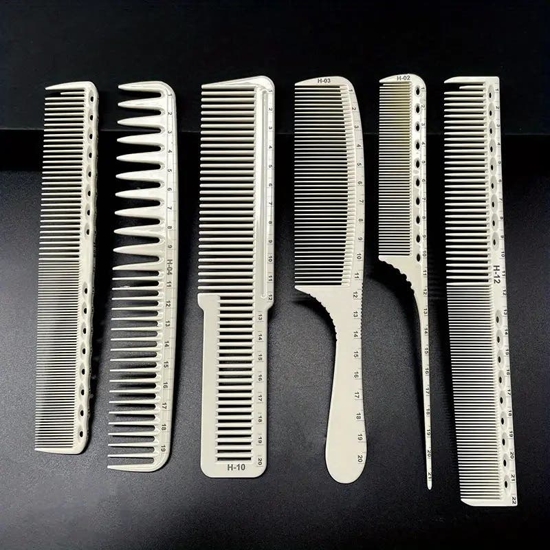Set of 6 Hairdressing ABS Plastic Handle,Anti-static Styling Combs - White