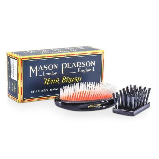 Expertly handcrafted, the Mason Pearson NU2MD Medium Military Hairbrush combines function and luxury. Featuring a cushion made from Dry Natural Rubber (DNR) and durable nylon tufts, this brush is designed for gentle scalp stimulation and effective detangling.