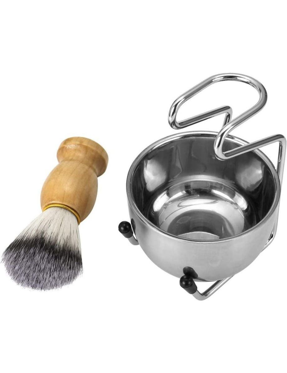 Mens Shaving Brush Set Badger Hair, Stainless Steel Stand, Bowl and Razor Holder