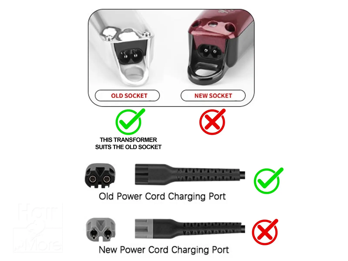 The charger is for the “new” cordless Wahl plugs (Prongs are open-ended vs the old design with closed-ended prongs)