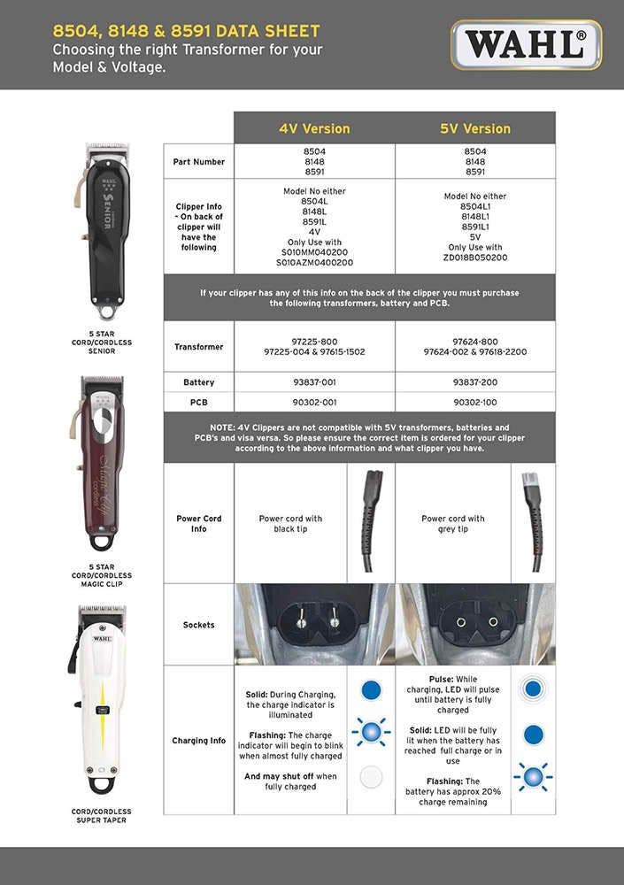 Note: 4V Clippers are incompatible with 5V transformers, batteries and PCBs and visa versa. So please ensure the correct item is ordered for your clipper according to the above information and what clipper you have.