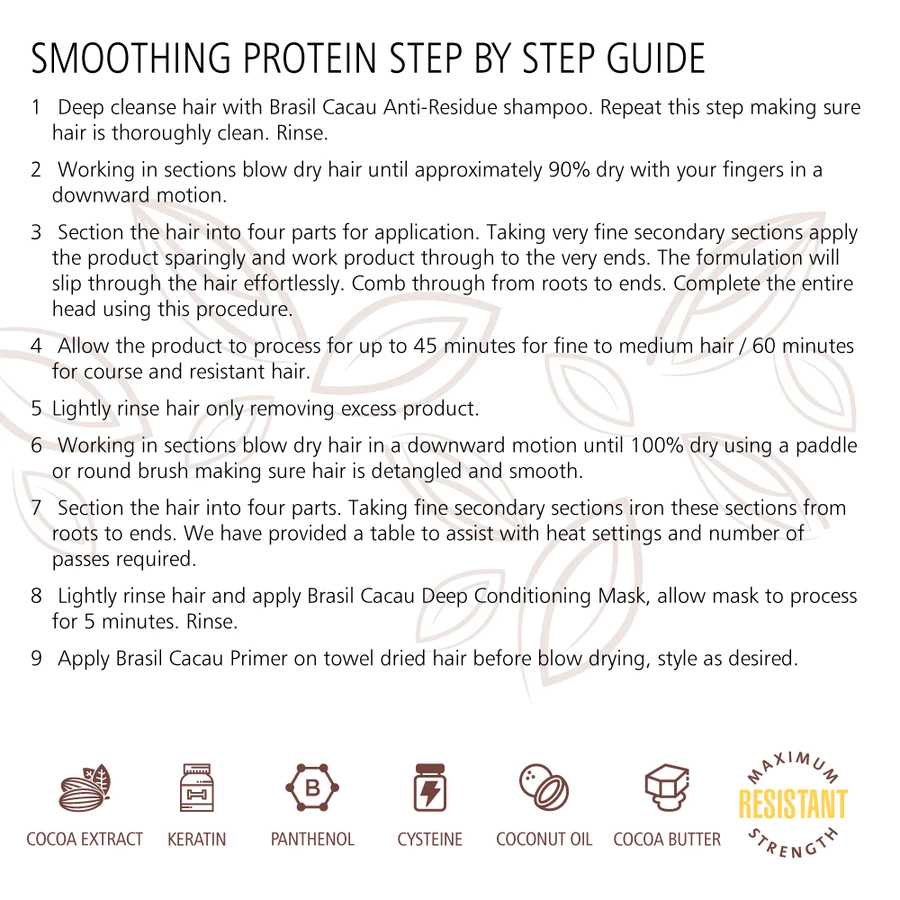 Brasil Cacau Smoothing Protein is a maximum strength smoothing and straightening treatment.