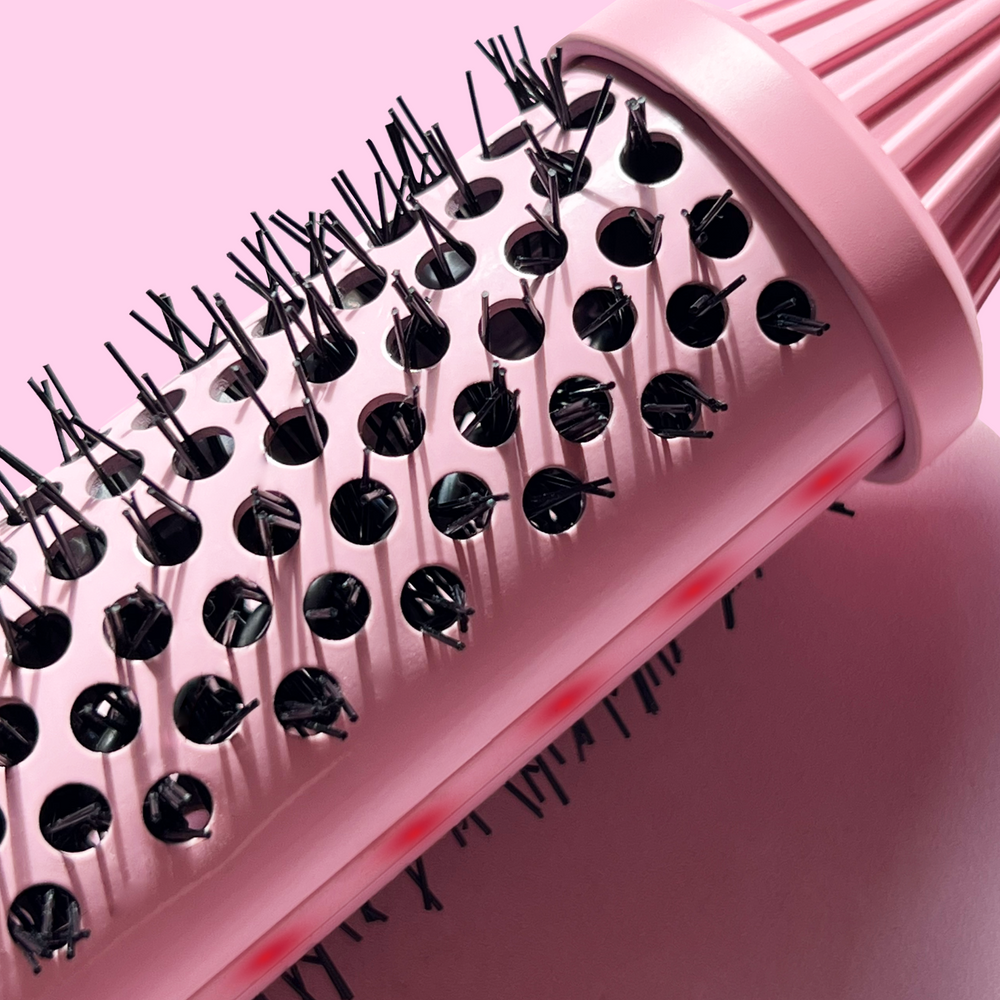 - Synthetic bristles - Uniquely spaced bristles allow more heat to reach the hair for greater curl & shape