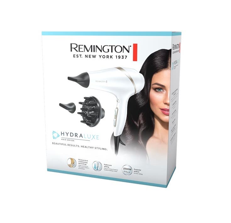 The Hydraluxe hairdryer by Remington has a Unique Moisture Lock Conditioners and Hydracare Setting so you can achieve healthy looking, smooth, shiny results without the worry of excessive heat damage. The Hydraluxe Hair Dryer features a unique moisture lock conditioning technology, which releases micro-conditioners, to help preserve the perfect balance of moisture.