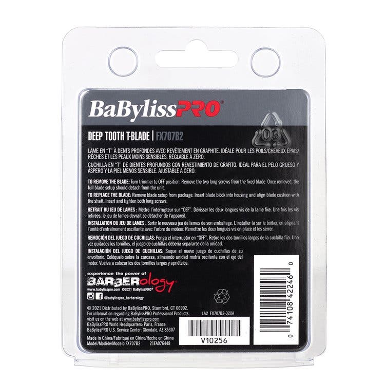 BaBylissPRO Graphite T-Blade 2.0mm Deep Tooth FX707B2 is a replacement blade for BaBylissPRO Skeleton Outliner Hair Trimmers. Designed to fit all BaBylissPRO FX787 Outliner Trimmer models, this is the standard blade on the BaBylissPRO BlackFX and SilverFX Outliner Lithium Trimmers