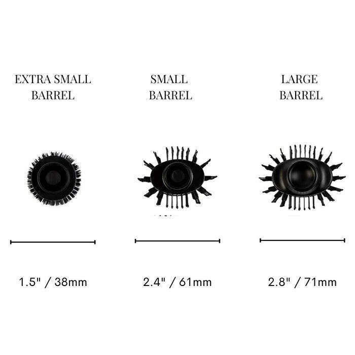 - Extra Small 38mm/ 1.5“ : The slim-barrel brush gets close to roots for increased volume, and adds body. Also to style fringes, soft curls and waves.