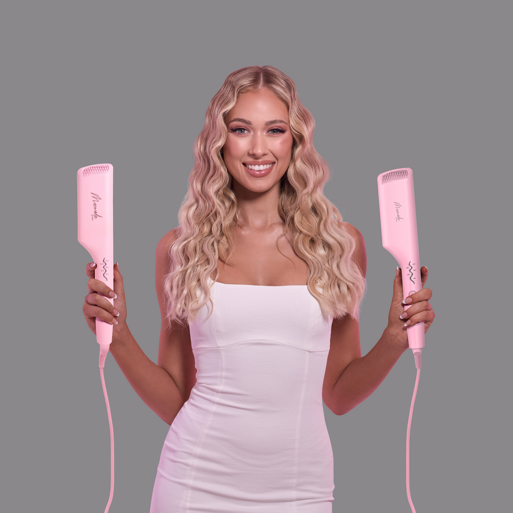 The Double Waver Max by Mermade Hair is the ultimate styling tool for creating effortless, voluminous waves with ease. Designed with a jumbo 32mm double-barrel and anti-scald plates, it delivers bouncy, statement-making waves in seconds. Thanks to advanced intelligent heat technology, it heats up in just two seconds, while ionic ceramic-coated plates protect your hair for a smooth, healthy finish. Lightweight, lockable, and travel-friendly with universal voltage, it’s perfect for styling anytime, anywhere. Plus, it comes with four sectioning clips and a soft travel pouch for effortless storage. Whether you're heading to the office, stepping out for a big night, or jet-setting on vacation, the Double Waver Max ensures your hair goals are always on point