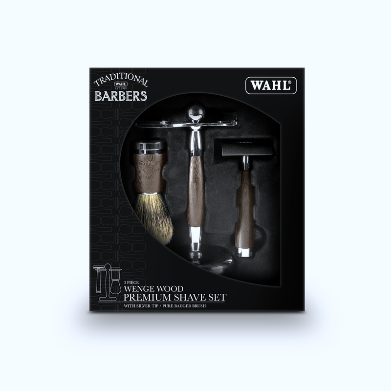 Wahl Traditional Barbers 3 Piece Wenge Wood Premium Shave Set