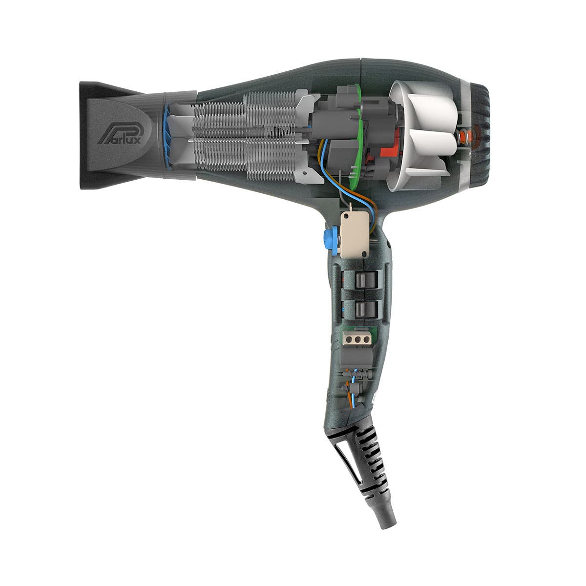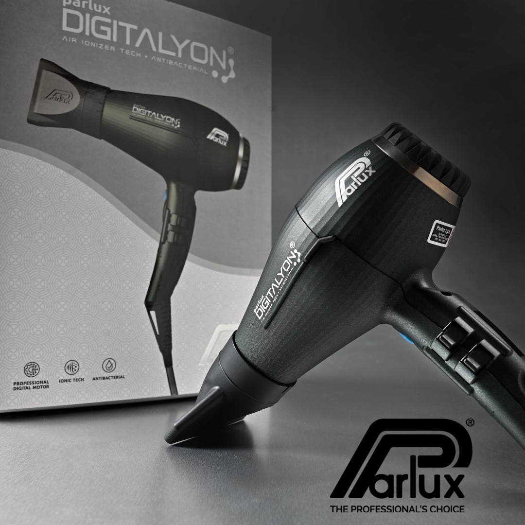 New professional digital motor E-Lyon: Very long-life with an airflow rate of 88m3/h. Parlux DigitAlyon Air Ionizer Tech Antibacterial Hair Dryer is more powerful, more lightweight and more quiet. New, wave heating element with variable geometry increases power to an astounding 2400 watts. Air Ionizer Tech ionic and ceramic technology softens hair and imbues shine while speeding up drying time. Special antibacterial paint creates an unfavourable surface for the proliferation of microorganisms and helps maintain hygiene during use. Exceptionally lightweight, ergonomic and perfectly balanced. This is the digital revolution