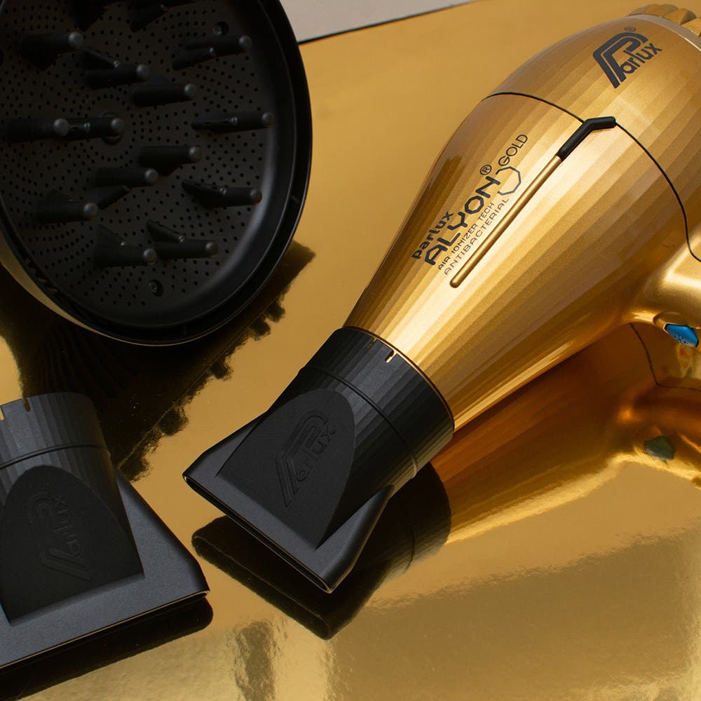 Alyon and MagicSense Diffuser, the powerful luxury couple. Parlux Alyon Air Ionizer Tech Hair Dryer Gold is where state-of-the-art Air Ionizer Tech meets gold luxury. Lightweight, ergonomic and durable, the Parlux Alyon will never limit your creativity. Air Ionizer Tech is kinder to hair, creating effortlessly lustrous results. An advanced combination of innovation and technology encased in gorgeous gold. Parlux MagicSense Diffuser’s larger size, as well as rapid hook-on feature for Parlux Alyon, enables the magic airflow/temperature ratio for perfect curls.