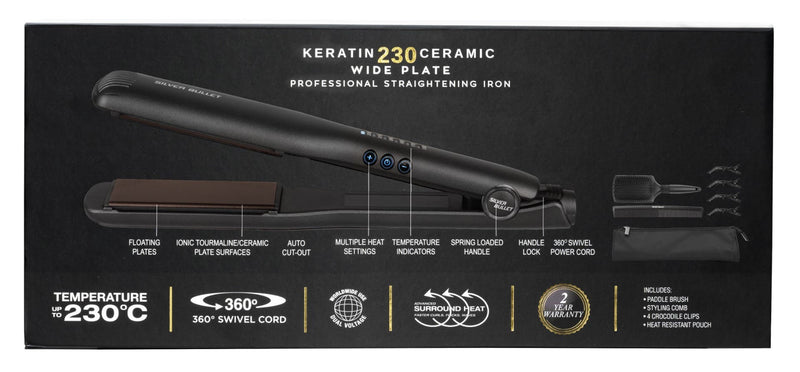 Silver Bullet NEW Keratin 230 Ceramic Wide Plate 37mm Hair Straightener 900424