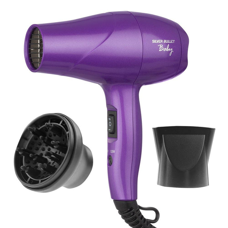 Silver Bullet Purple Baby Travel Mini Hair Dryer & Diffuser - 1200W Dual Voltage