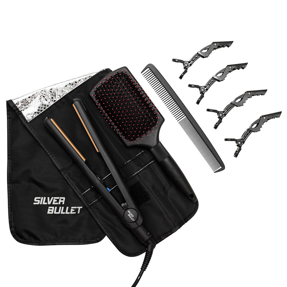 You’ll know when you’ve got it. Friction free ceramic/tourmaline floating plate surfaces for ultra-smooth straightening. Variable heat settings up to 230°C, caters for all hair types. Plus the Attitude Pack includes a heat resistant storage pouch, paddle brush, styling comb and sectioning clips. The Silver Bullet Attitude Hair Straightener provides everything you need to create conditioned, head turning results.