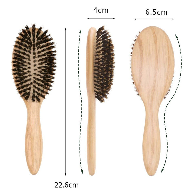 BoomsLife Oak Wood Handle 100% Soft Boar Bristle Cushion Brush