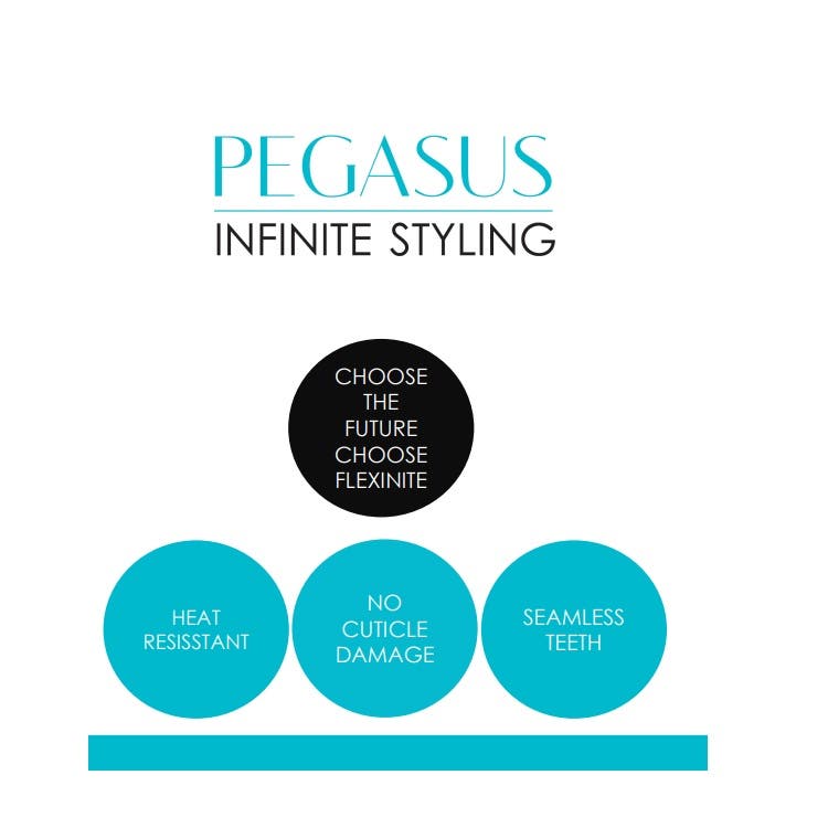 Storming Europe and the USA, Pegasus combs redefine styling. Combined with revolutionary Flexinite technology, Pegasus Barber Comb is styling at its best. Flexinite Smart Comb Technology creates seamless teeth which are sensitive to changing temperatures, mimicking hair and flexibly moving in response to heat and chemicals. The result? No damage to hair.