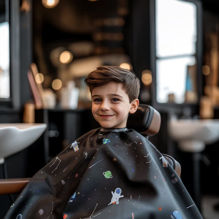 Introducing the All Purpose Hair Cutting Cape in a fun Astronaut Design! Made from 100% polyester, this cape is not only waterproof but also durable, keeping your child dry during haircuts. It features a convenient snap closure for easy wear and removal. Designed in a regular kid size, it’s perfect for hair salons, home use, or even themed parties! Keep haircuts fun and mess-free with this stylish, easy-to-clean cape