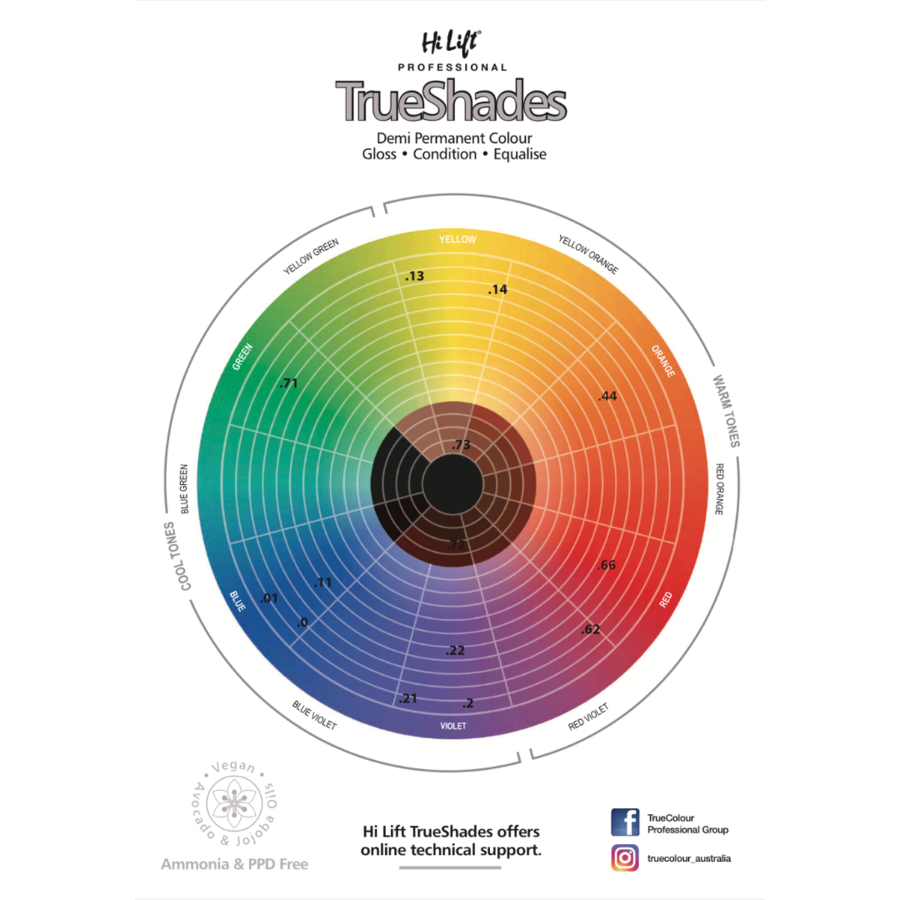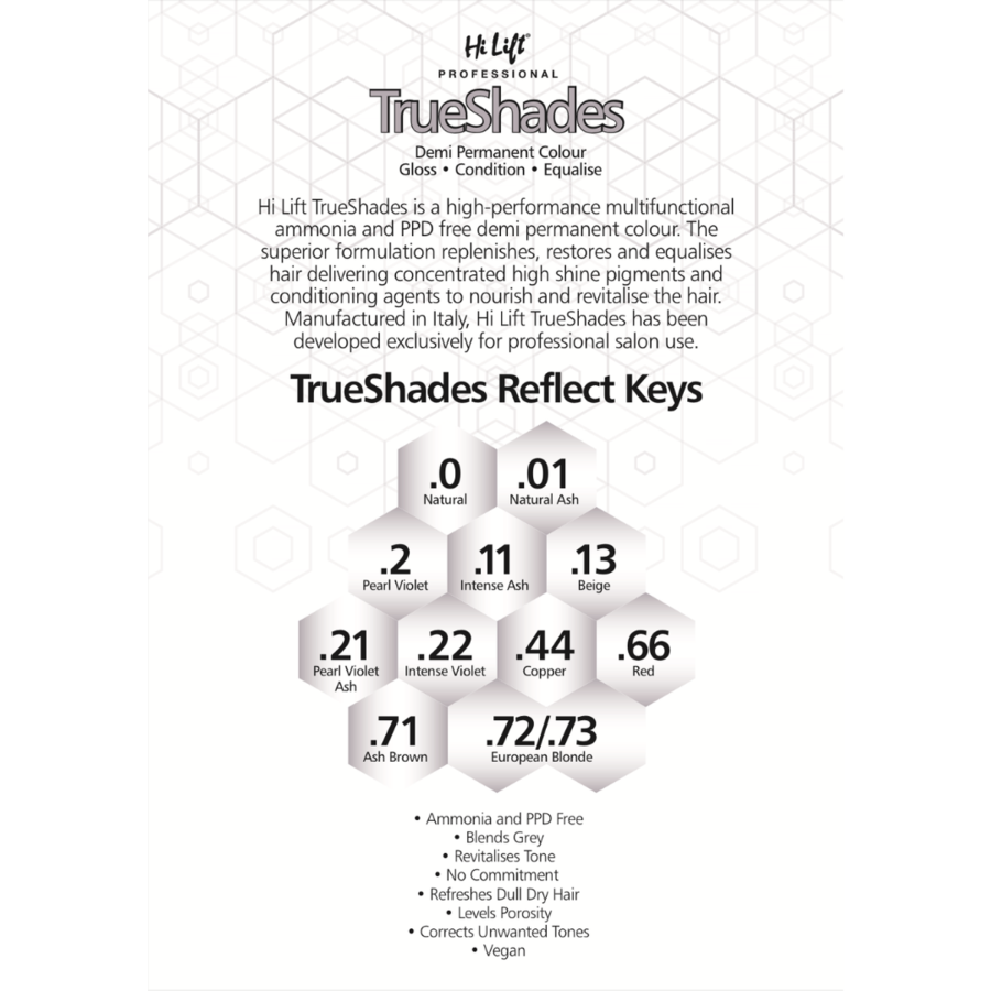 Hi Lift TrueShades is a high-performance multifunctional ammonia and PPD free demi permanent colour.