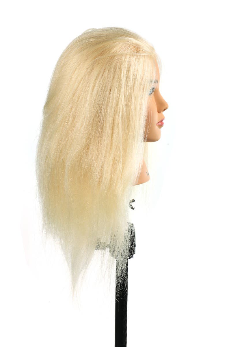 Meet Tiana, the light blonde hair mannequin head. 100% Indian human hair, light blonde, is perfect for practising cutting and colouring techniques. SSS HAIR Tiana features a rubber head with face design and lashes. Gives true results when perming, colouring or heat styling, while the natural hairline is perfect for cutting and styling. 18 inches of hair specifically woven to prevent tangling when wet.