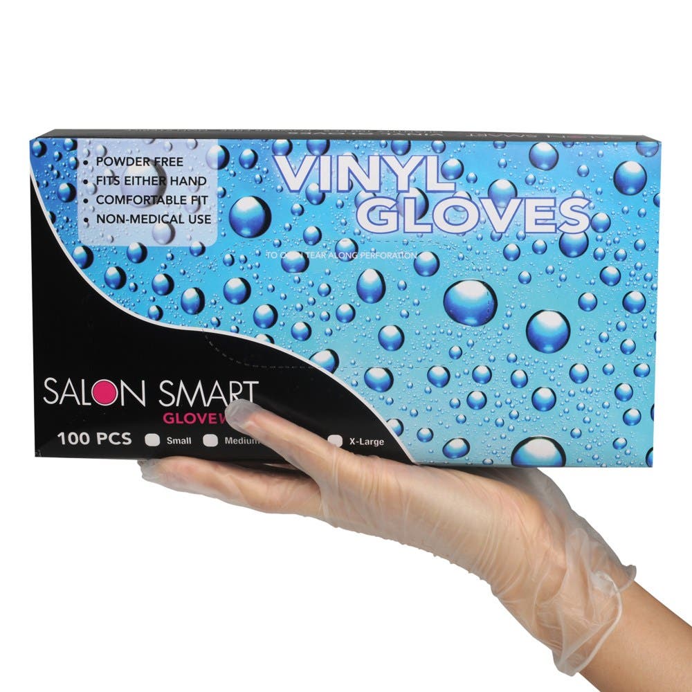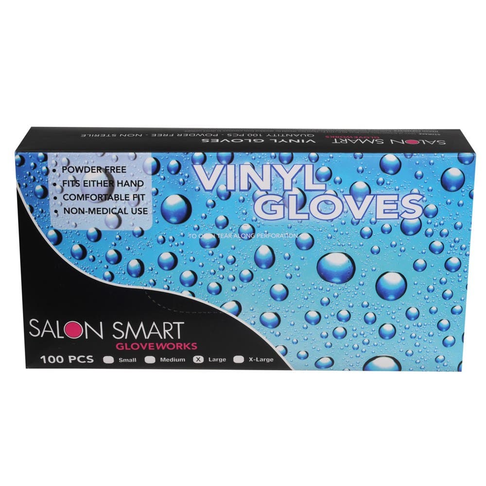 Allergy Free Vinyl Gloves If you have an allergy to latex, never fear! Vinyl gloves are a terrific non latex option. Salon Smart Gloveworks Professional Vinyl Gloves provide superior comfort and fit. Salon Smart Gloveworks Vinyl Gloves are powder free and intended for non-medical use within hairdressing and beauty salons. Salon Smart Gloveworks Vinyl Gloves are available in three sizes. 100 gloves per pack.