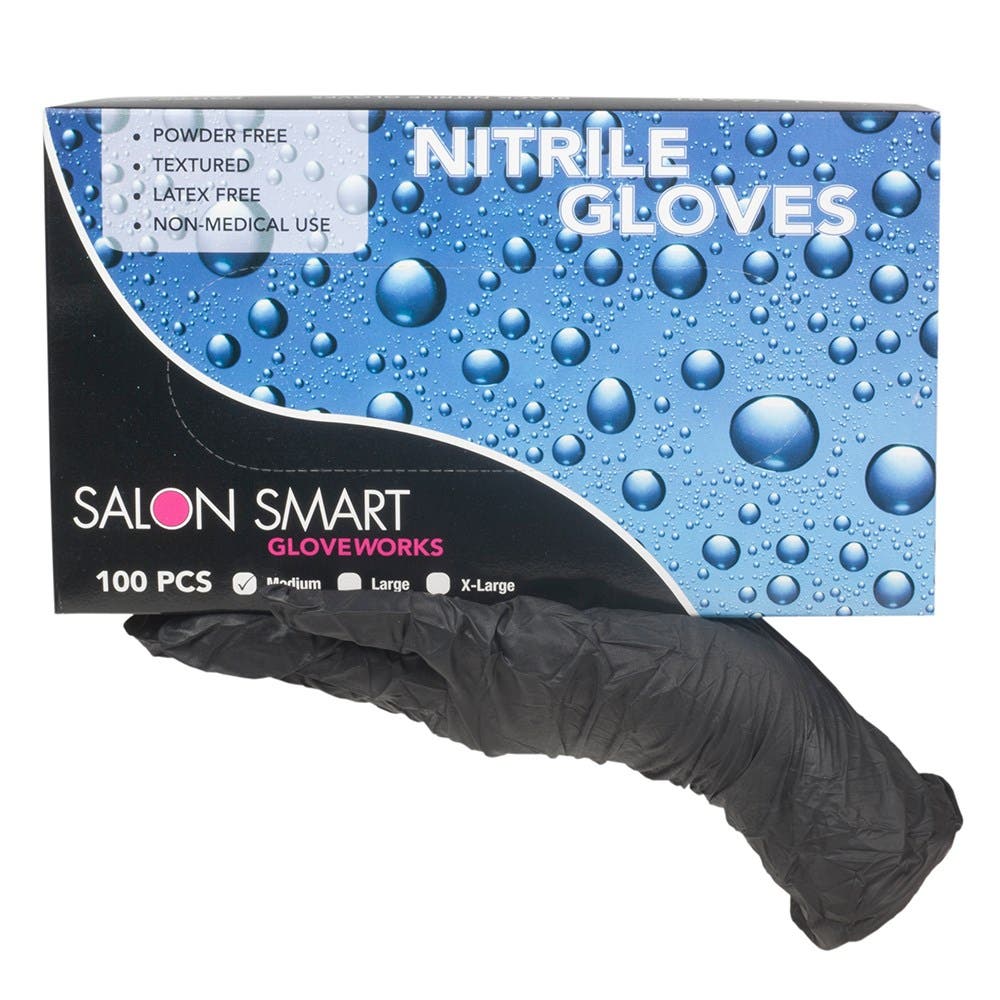 Salon Smart Gloveworks Black Nitrile Gloves offer superior puncture resistance. No more fears of tearing or ripping your gloves when you use Salon Smart Gloveworks Black Nitrile Gloves! Gloves are powder-free and textured, as well as latex-free and suitable for those with latex allergies. Perfect for non-medical, salon use.