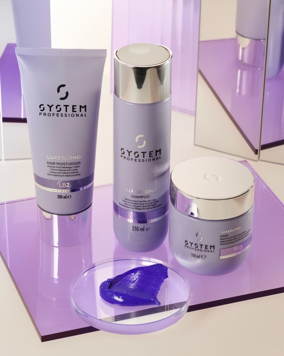 - LuxeBlond 250ml: Daily gentle cleansing that removes buildup and pollution while instantly neutralising brassy and yellow undertones