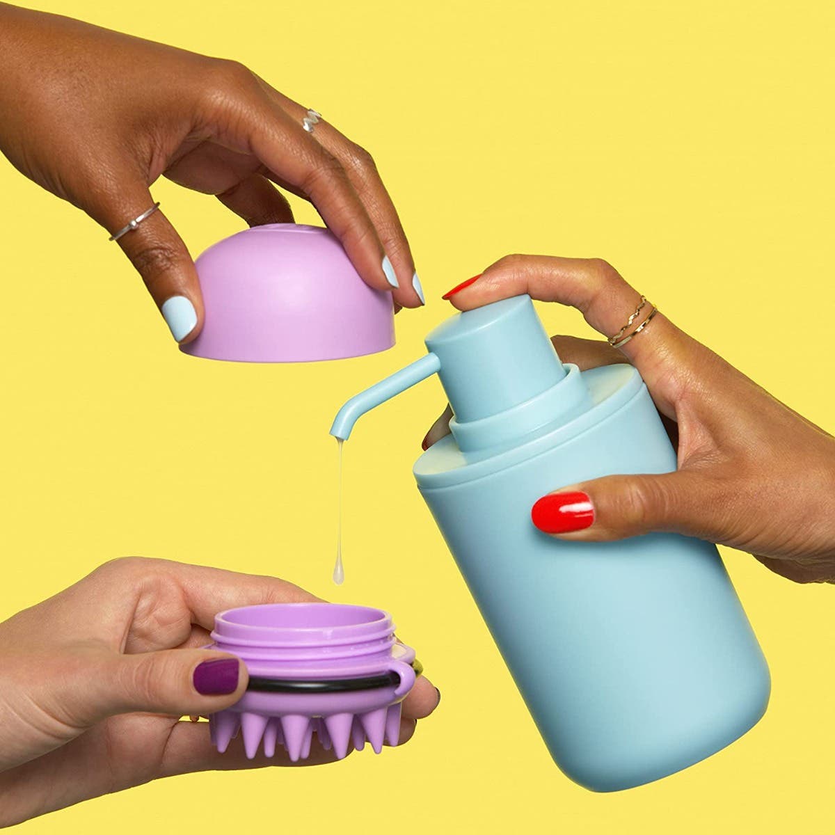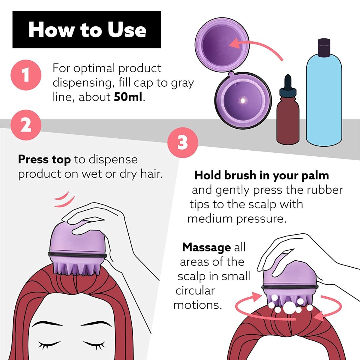 - To use, fill with your favourite product and gently massage the scalp in circular motions