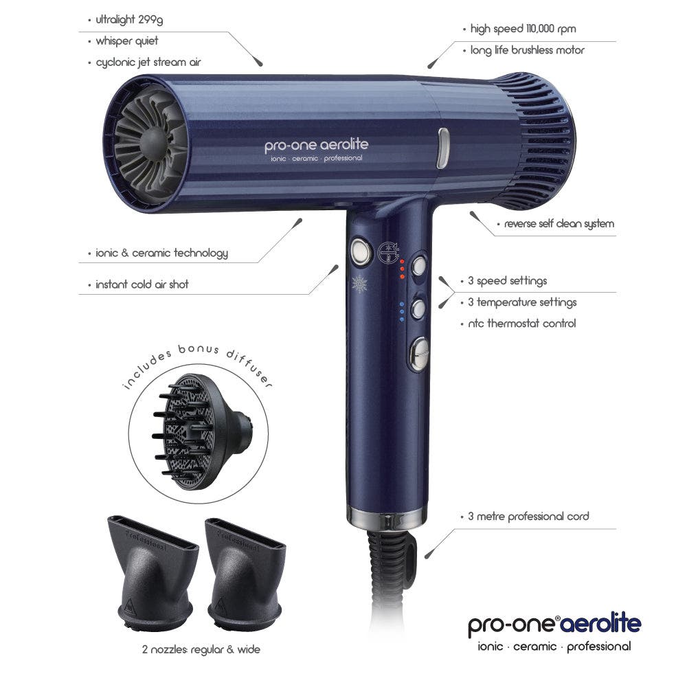 Pro-One Aerolite Hairdryer PRO06 - Blue Sapphire